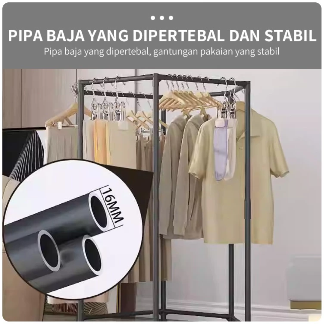 - Multi-layer Penyimpanan --- Bisa gantung baju, handuk, tas, topi sekaligus.