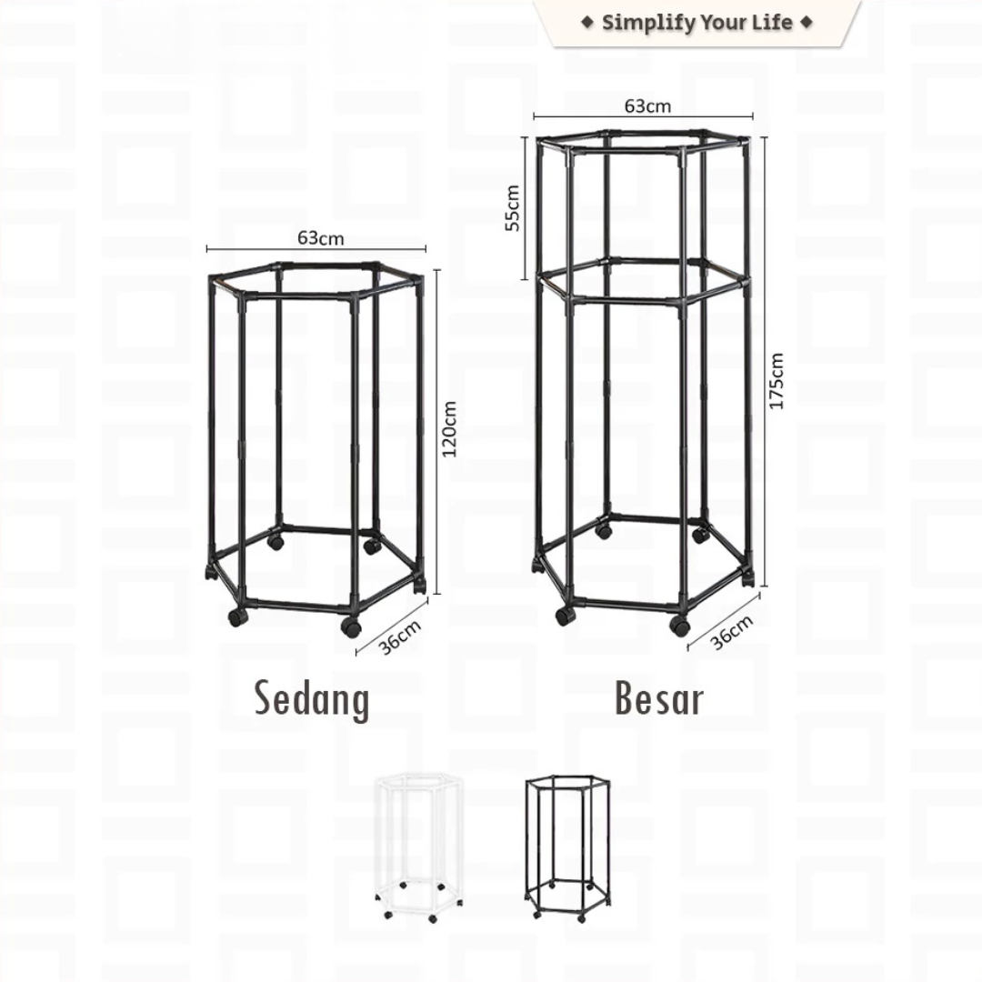 Fitur: Gantungan pakaian, rak serbaguna, anti karat